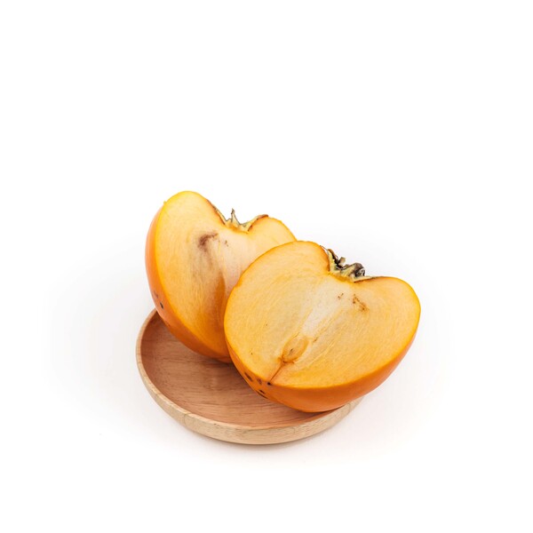 Pela los caquis y las peras. Corta las peras en trozos pequeños y coloca toda la fruta en una bandeja de horno.