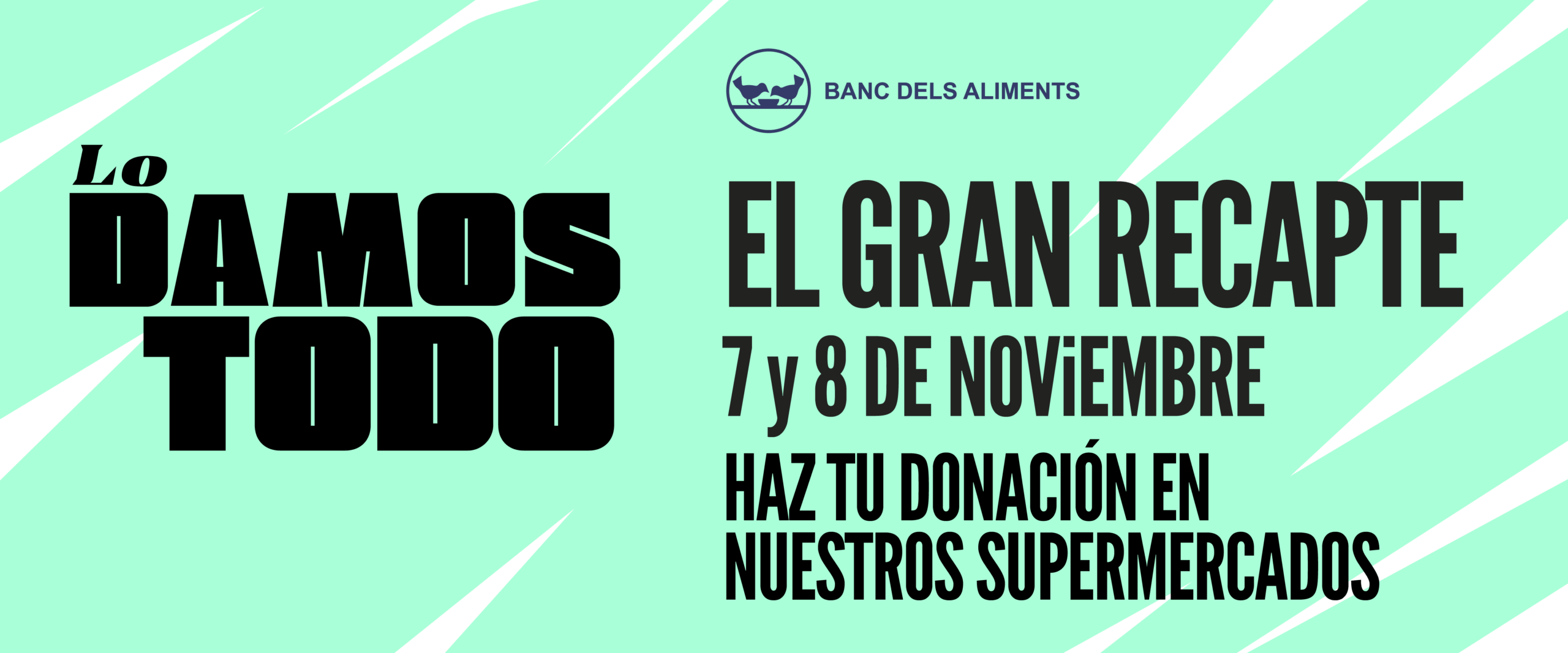 Bajo el lema «Los damos todo «, llega una vez más el Gran Recapte, una campaña que promueve el Banco de Alimentos de Cataluña con el objetivo de informar y sensibilizar a la ciudadanía sobre la realidad de pobreza alimentaria que existe en nuestra sociedad. Además , la iniciativa también busca favorecer la donación de alimentos y promover el voluntariado continuo a lo largo del año.